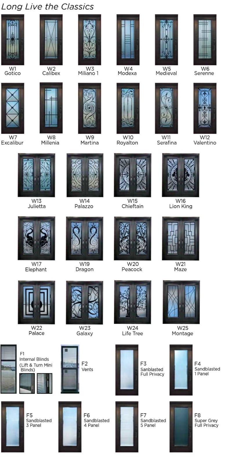 The art of wrought iron has been in existence for centuries. Each intricate piece in the Wrought Iron entry doors collection has been individually crafted to provide unmatched class and style. Sealed between two panes of tempered glass each design will contribute to the elegance and security of every home.